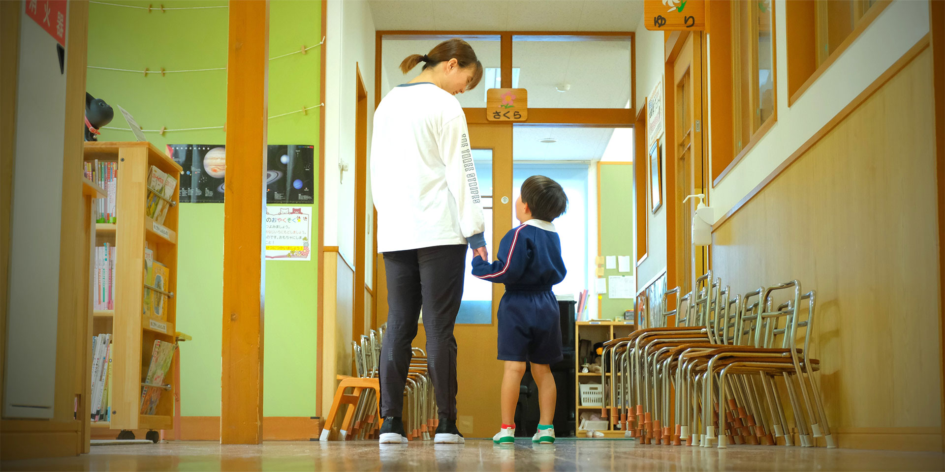 今日も、広い園庭で元気いっぱい笑顔で駆け回る子どもたちの姿がこの園にはあります。