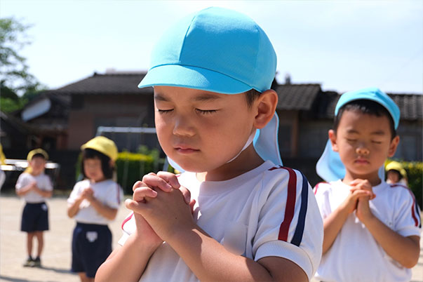 日々の保育では、子ども礼拝やお祈りがあり、讃美歌を歌ったり牧師のお話を聴いたりして、神様の愛に触れる『キリスト教保育』を実践しています。