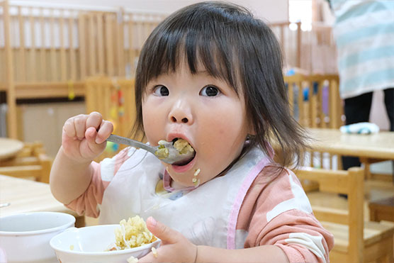 全児、米飯とおかず、デザートが栄養バランスを考慮して出されます。